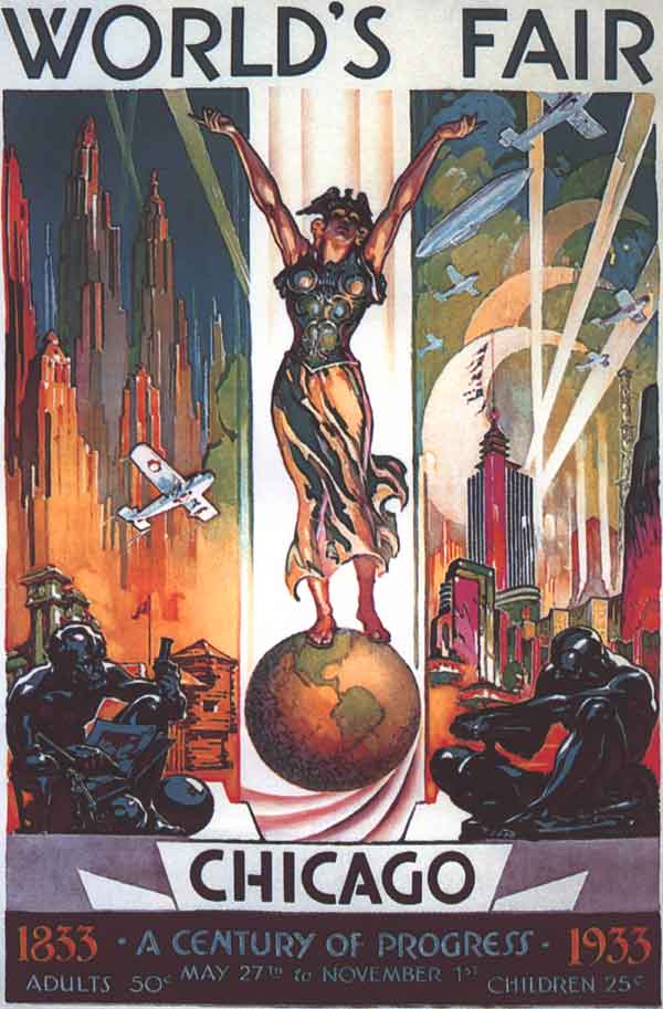 The overall theme of the fair was “A Century Of Progress”, mainly through technology. Taking place in the heart of the great depression and a mere fifteen years after The Great War, this was clearly the triumph of hope over experience. As we now know, progress suffered serious setbacks in the decades that followed. Believing technology can eliminate human weakness is a human weakness itself.